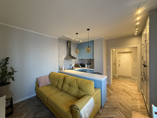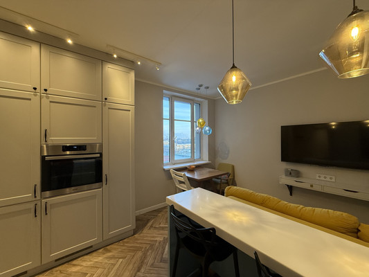 Арт. 129109752 2-евро квартира с ремонтом! 1. Дом ЖК Московские Ворота, 2016 г.п., комфорт-класс, удален от шума дорог. Закрытая территория обеспечивает безопасность и приватность. Видеонаблюдение, паркинг; 2. Квартира 2-евро планировки, стильная и уютная. Комфортный 10й этаж. Ремонт делался для себя по дизайн-проекту, мебель на заказ, продуманное пространство. Кухня-гостиная 16.1 кв.м, просторная спальня с выходом на балкон. Вид из окон в пространство и на восток. Продается с мебелью и техникой; 3. Престижный Московский район. В пешей доступности все необходимые объекты социальной и коммерческой инфраструктуры, включая рестораны и кафе. В 10 транспортом Парк Авиаторов и Московский парк Победы, ст. метро Московские Ворота 860 м, до центра и ЗСД 10 минут транспортом; 4. Собственность более 5 лет, приобреталась у застройщика, 1 собственник, юридически чистая.