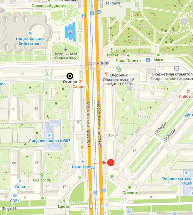 На карте: Санкт-Петербург, Московский проспект, д.192-194